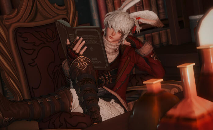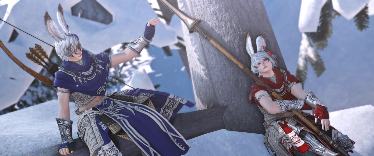 Rubin and Safir were viera twins, the only difference being Rubin's red eyes and Safir's blue. From birth, they were inseparable, always playing and helping around the village, or at the flower field they often sneaked away to visit. They each made an earring for the other, Safir making a fiery red for Rubin, and Rubin in turn making a deep blue for Safir. Safir, who was more outgoing, was the voice for the quieter, shyer Rubin.When they turned thirteen, they learned they were both male—a rarity among viera. According to tradition, they were to be taken and trained by a male wood warden, eventually leading a life of solitude as a wood warden themselves. It was told, "A male viera lives alone and dies alone." Despite this, Rubin and Safir were determined to remain together. When a warden named Solja came to their village, they followed him and began their training under his guidance.Solja became a father figure to them, and they thrived in their roles as wood wardens. Seven years passed in contentment, and they were prepared to spend their lives together in the forest.One day, while patrolling alone, Rubin and Safir discovered a glowing crystal protruding from the ground. Rubin, cautious, suggested they consult Solja, but Safir's curiosity led him to approach the crystal. Overwhelmed by its aether, Safir went berserk and attacked Rubin.Rubin, using his spear, desperately tried defending himself, begging his brother to stop. The fight ended tragically with Rubins spear through Safirs chest. As Safir collapsed, Rubin held him in his arms as panic set in. Safir, with the last of his strength, apologized, urging Rubin not to blame himself and to promise to live on.Through his tears, Rubin promised. As Safir's grip slackened, Rubin wailed in despair.Solja arrived soon after hearing Rubin's cries. Seeing Safir's lifeless body and Rubin’s spear, Solja believed Rubin had betrayed and murdered his brother. Filled with rage and sorrow, Solja attacked Rubin but couldn't bring himself to kill him. Instead, he banished Rubin from the forest, branding him "Svikari"—traitor.Devastated, Rubin fled, running for days until he reached a city by the ocean. There, he boarded a ship bound for Limsa Lominsa, determined to honor Safir’s memory. Adopting the name "Knit Bone," after Safir’s favorite flower, comfrey. He set out as an adventurer to keep his promise and find a new purpose.